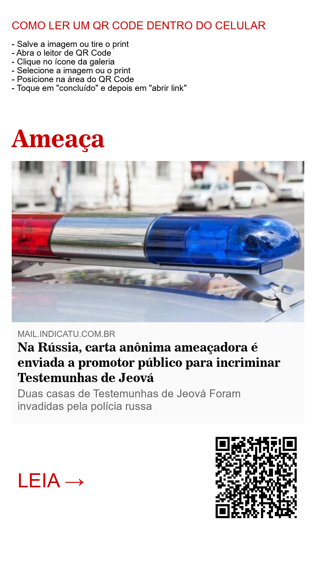 Ainda de acordo com o site JW em russo, a autorização para invasão de residências de testemunhas de Jeová  por parte da polícia russa é apenas mais uma forma de pressionar as Testemunhas de Jeová a abandonarem a sua fé.