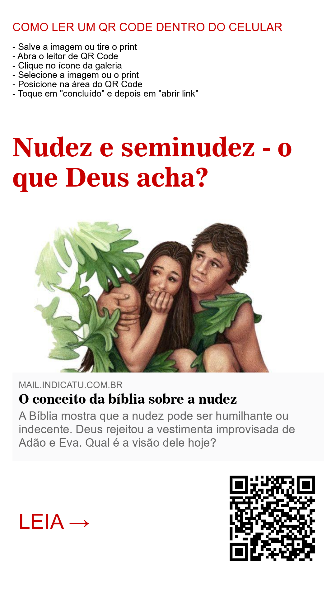 A Bíblia mostra que a nudez pode ser humilhante ou indecente. Deus rejeitou a vestimenta improvisada de Adão e Eva. Qual é a visão dele hoje?