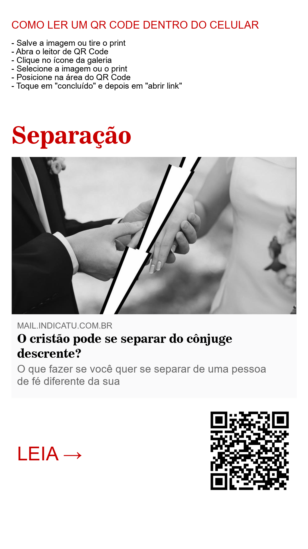 Já a outra, o conselho é para o cristão não entrar num relacionamento espiritualmente comprometido. Diz: