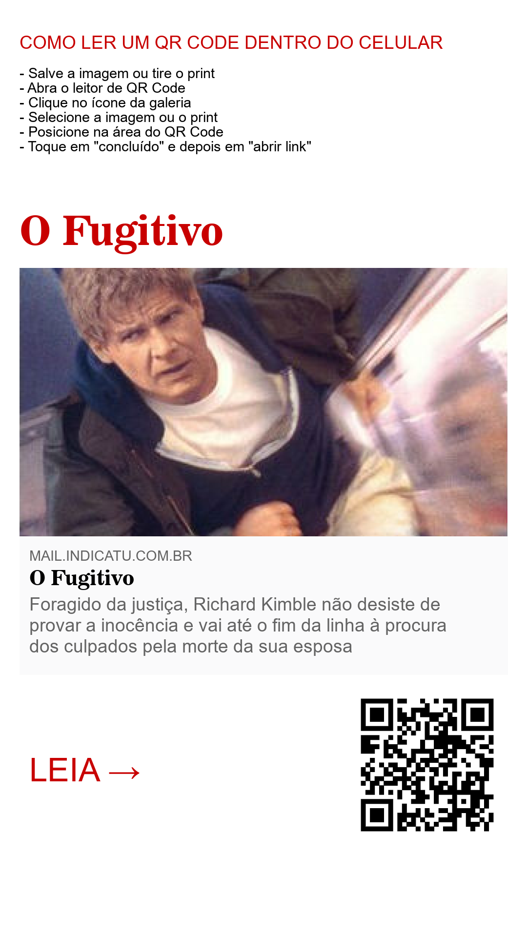 Após ser condenado à pena de morte pelo crime que não cometeu, Kimble enfrenta uma jornada desafiadora. Ele consegue escapar da prisão devido a um acidente inesperado, o que lhe oferece uma oportunidade de provar sua inocência. A partir desse ponto, a trama se intensifica, pois Kimble não apenas luta para encontrar os verdadeiros culpados, mas também tenta evitar a captura pelas autoridades, lideradas pelo determinado policial Samuel Gerard (Tommy Lee Jones). Essa busca incessante pela verdade revela a resiliência e a determinação de um homem injustamente acusado.
