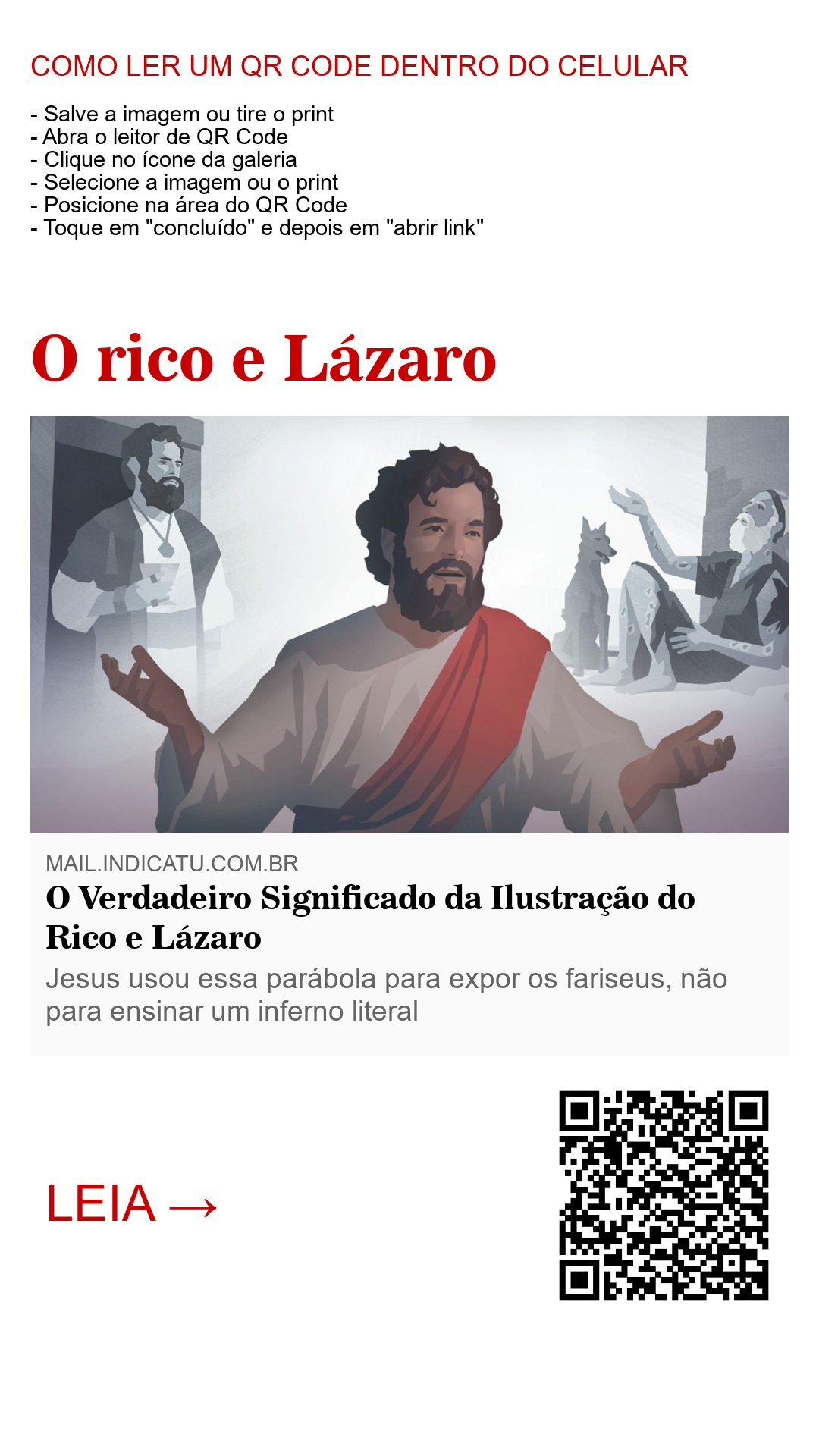 Portanto, a ilustração do Rico e Lázaro não deve ser usada como prova de um inferno de fogo, mas como um aviso sobre a importância da humildade e da obediência à verdade divina.