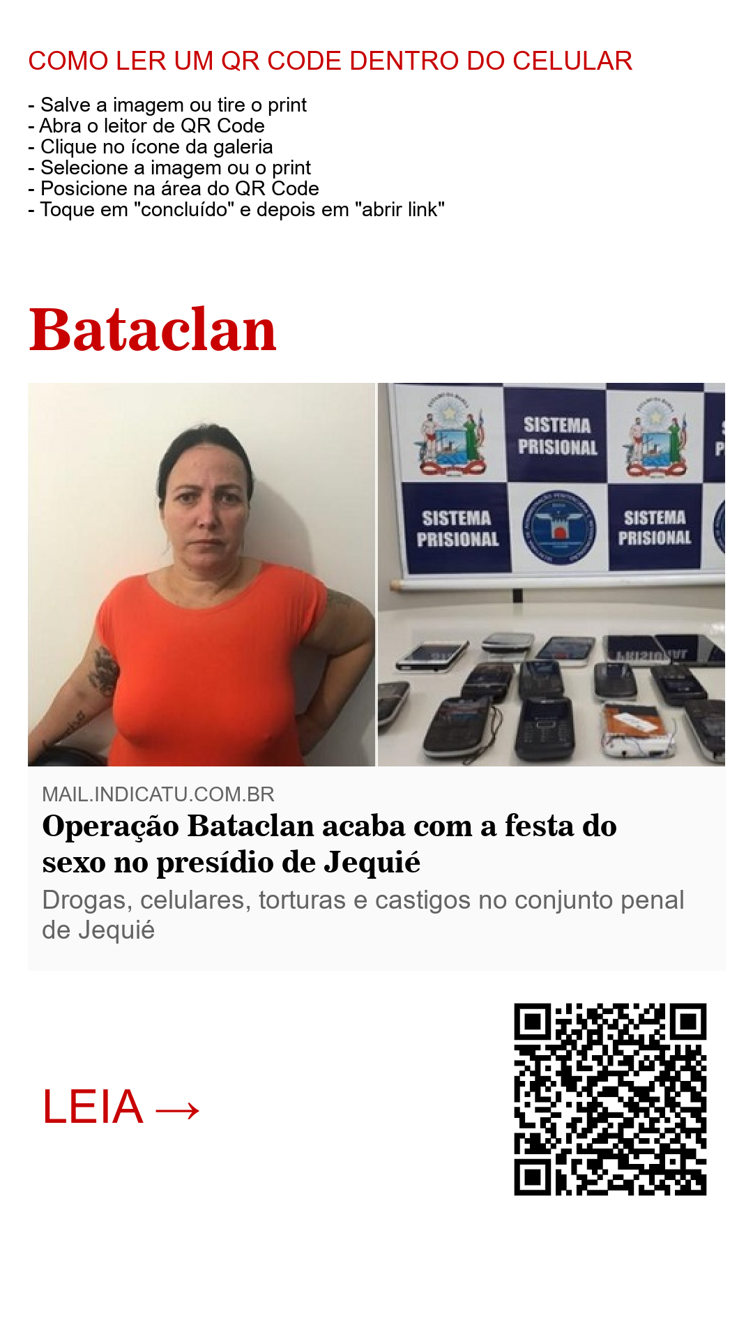 Uma operação conjunta entre as forças de segurança composta pela Polícia Federal, Polícia Civil, Polícia Militar e agentes penitenciários, batizada de 'Operação Bataclan', desbaratou um forte esquema de prostituição que operava a todo vapor por mulheres presas no conjunto penal de Jequié, no médio sudoeste baiano.