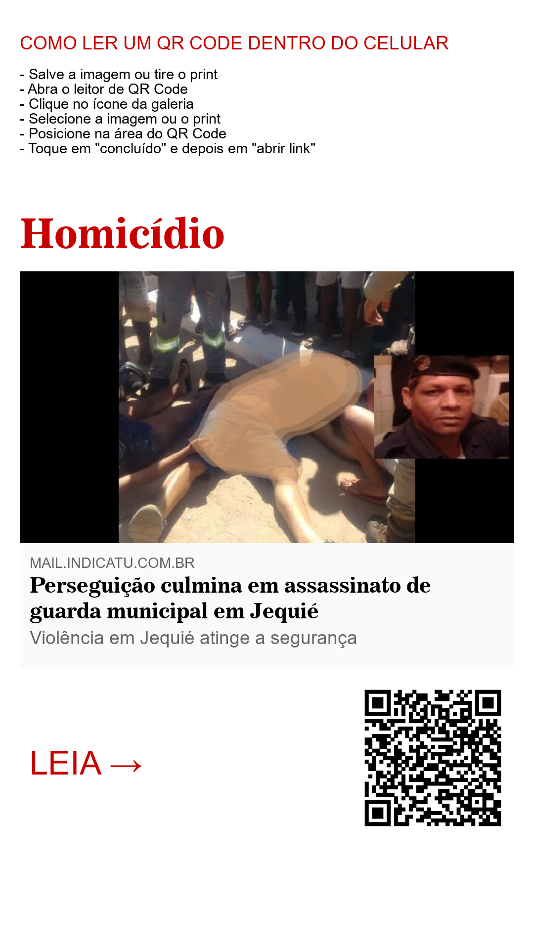 Informações dão conta de que por volta das 14h00, o guarda municipal Washington Souza Pereira foi abordado por dois indivíduos em uma motocicleta no bairro Cidade Nova em Jequié e alvejado a tiros pelo elemento que estava na garupa da moto. Os elementos perseguiram a vítima, que conduzia sua motocicleta com a filha na carona no momento do crime.