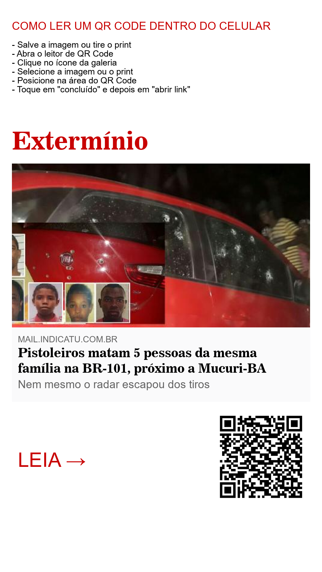 Pistoleiros matam 5 pessoas da mesma família na BR-101, próximo a Mucuri-BA