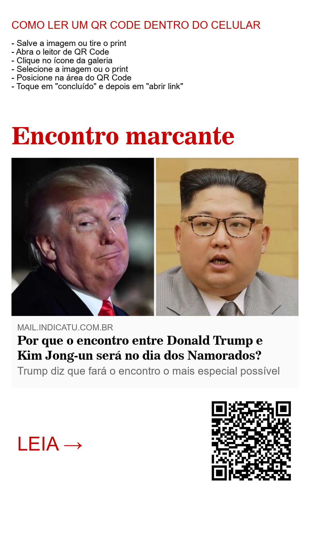 O encontro entre Donald Trump e Kim Jong-Un será no dia dos namorados, e será histórico. Em nenhuma outra ocasião, os líderes em exercício das duas nações se encontraram para tratar de quaisquer assuntos. O dia e o local escolhidos para o encontro foi o 12 de Junho, dia dos namorados, na cidade-estado de Singapura, no Sudeste asiático.