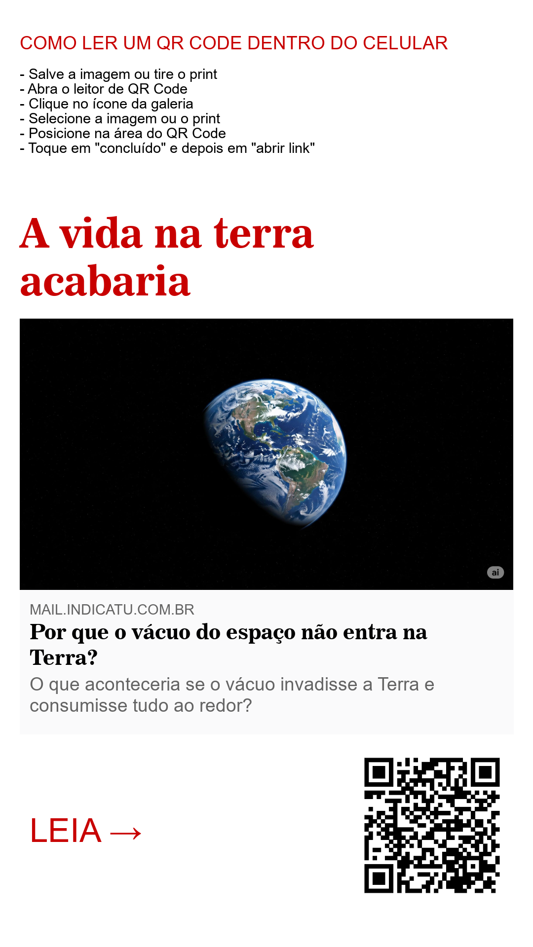 Se, de alguma forma, a Terra perdesse sua atmosfera (por exemplo, se a gravidade sumisse), aí sim o vácuo “entraria”, ou melhor, o ar escaparia violentamente para o espaço. Isso causaria a morte de todos os seres vivos, o colapso de construções e a destruição da vida como conhecemos. Mas esse cenário é extremamente improvável com as leis atuais da física.