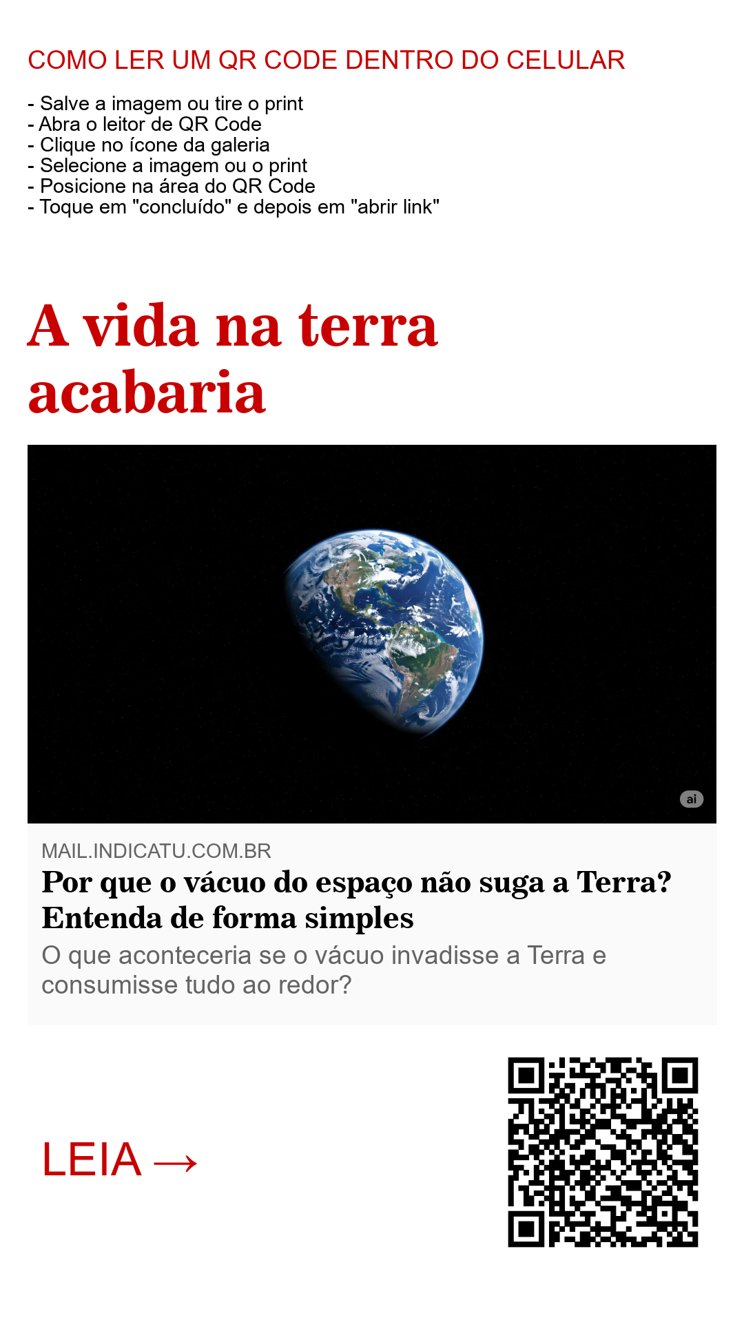 Se, de alguma forma, a Terra perdesse sua atmosfera (por exemplo, se a gravidade sumisse), aí sim o vácuo “entraria”, ou melhor, o ar escaparia violentamente para o espaço. Isso causaria a morte de todos os seres vivos, o colapso de construções e a destruição da vida como conhecemos. Mas esse cenário é extremamente improvável com as leis atuais da física.