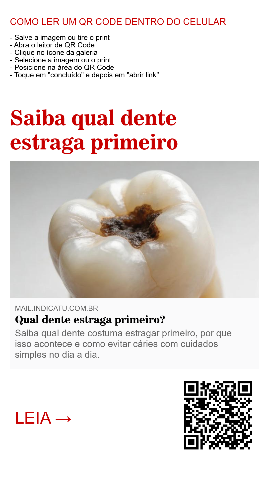 Saiba qual dente costuma estragar primeiro, por que isso acontece e como evitar cáries com cuidados simples no dia a dia.