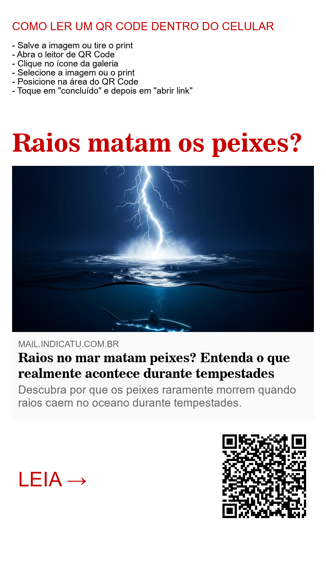 Mesmo em águas rasas, a eletricidade do raio se dissipa com rapidez à medida que se afasta do ponto de contato. A energia diminui a cada centímetro percorrido, o que reduz drasticamente o risco para os peixes conforme aumenta a distância do local onde o raio caiu.