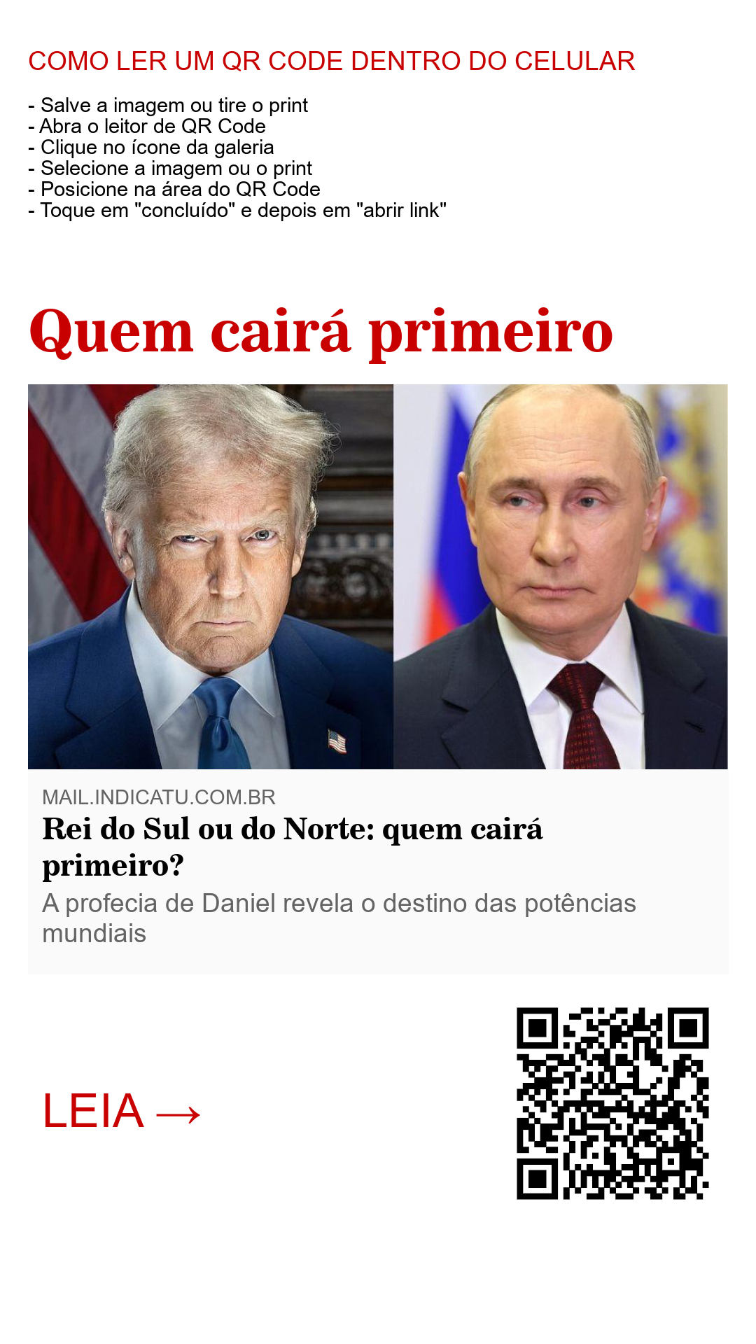 À primeira vista, parece que o rei do norte será o único rei em atuação quando chegar o fim. Mas isso não bate com uma outra profecia de alta importância. Antes de falar dela, voltemos à questão: rei do sul, ou rei do norte - quem cairá primeiro? Se Deus vai destruir o sistema de coisas de uma só vez e os reis do sul e do norte estarão ativos no tempo do fim, onde está a destruição do rei do sul?