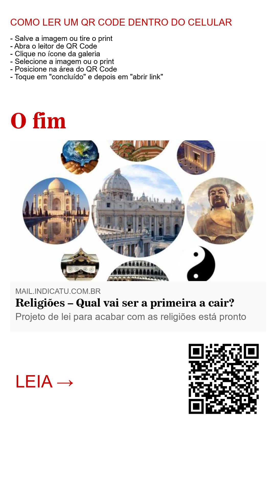 Nas entrelinhas desse processo, é quase que inconcebível o fato de que, atuais líderes religiosos, que até então brilham como estrelas portadoras de luz, levarão surras em vias públicas de ex-fiéis possuídos de ódio por terem sido enganados por anos a fio pelos tomadores do dinheiro alheio. O cenário pavoroso de igrejas destruídas e incendiadas será de causar espanto até mesmo nos corações mais valentes, tamanha a sensação de horror causada pela dimensão do evento colossal e paranoico, encabeçado por governantes políticos forçados a agirem como doidos tomados de fúria no executar do aniquilamento total das entidades religiosas.