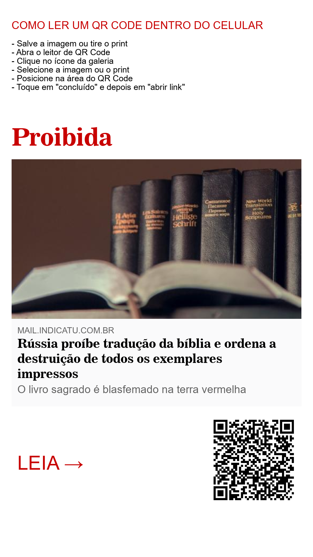 Rússia proíbe tradução da bíblia e ordena a destruição de todos os exemplares impressos