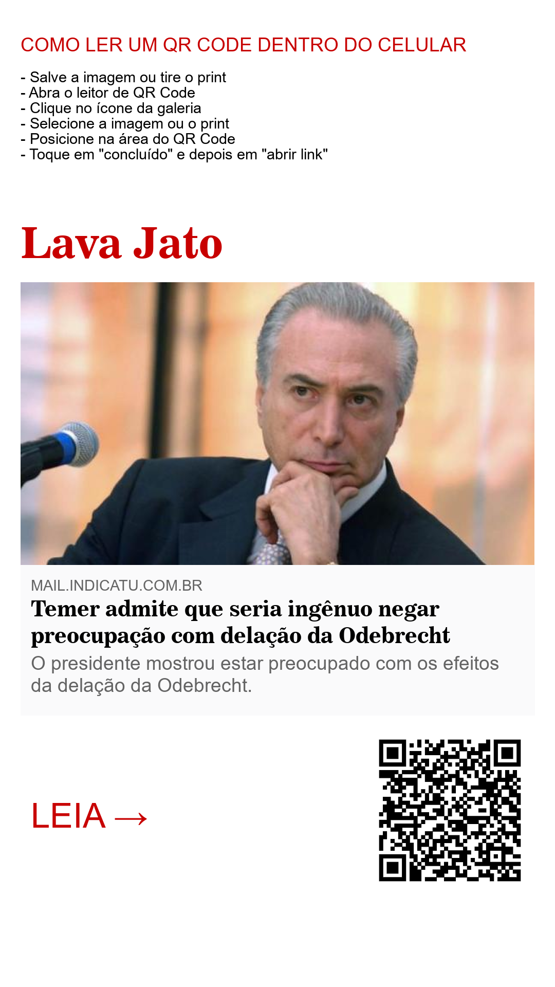 O presidente da República, Michel Temer, reconheceu pela primeira vez em público, neste domingo (27), em entrevista coletiva, estar preocupado com os efeitos da delação da Odebrecht, que deverá atingir partidos e políticos de todas as legendas. "Se dissesse que não há preocupação com a delação da Odebrecht, seria ingênuo. Claro que há preocupação de natureza institucional. Há preocupação, claro, não há dúvida que há", disse o peemedebista, após o anúncio, ao lado dos presidentes da Câmara, Rodrigo Maia (PMDB-RJ), e do Senado, Renan Calheiros (PMDB-AL), do veto dos poderes executivo e legislativo à anistia ao caixa 2.