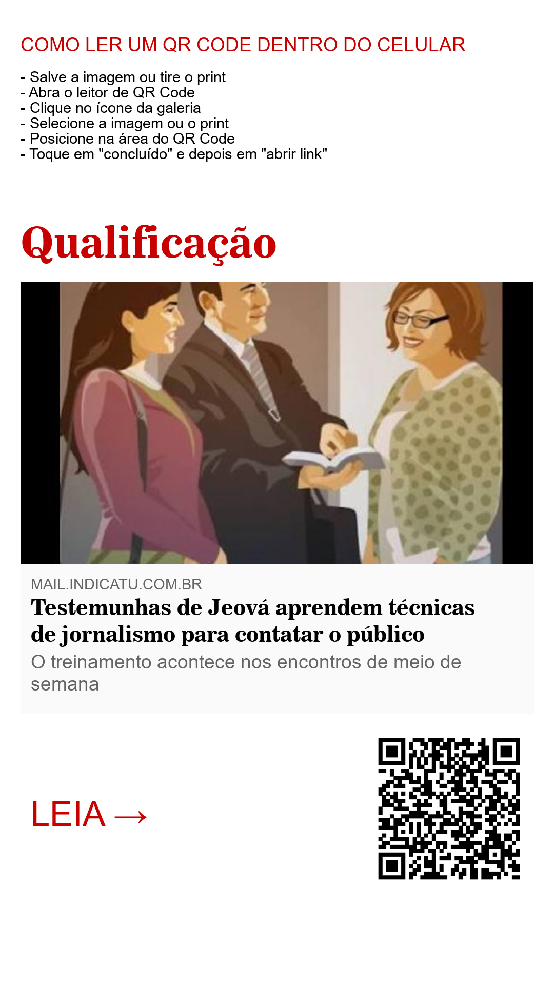 Trata-se dos métodos usados pelas Testemunhas de Jeová ao contatarem as pessoas de porta em porta. As técnicas de comunicação usadas por elas para falarem com o público são as mesmas técnicas aprendidas por alunos dos cursos de jornalismo nas universidades.