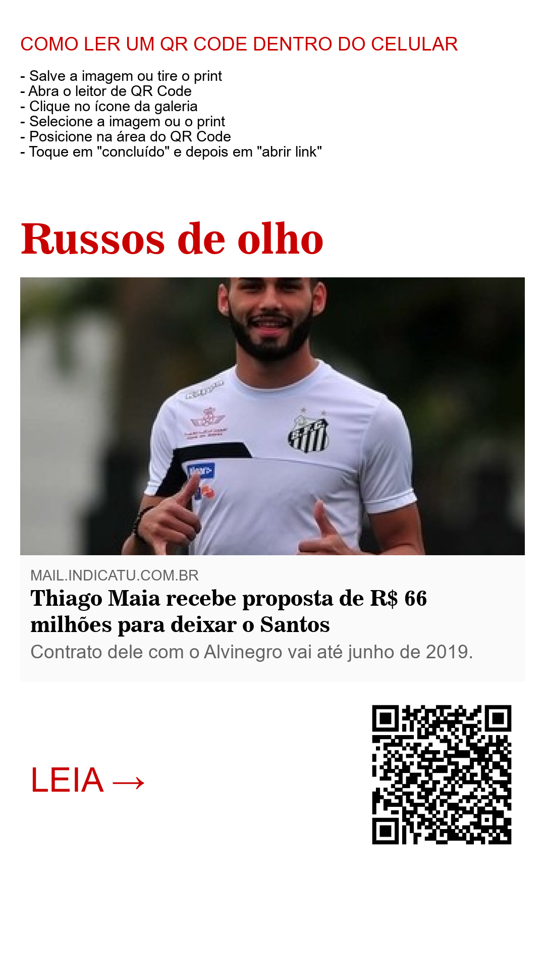 O volante Thiago Maia recebeu uma proposta de 18 milhões de euros (cerca de R$ 66,6 milhões, segundo a cotação desta sexta-feira) do Zenit, da Rússia. O jogador de apenas 19 anos tem contrato com o Santos até junho de 2019 e é titular absoluto do time comandado pelo técnico Dorival Júnior.