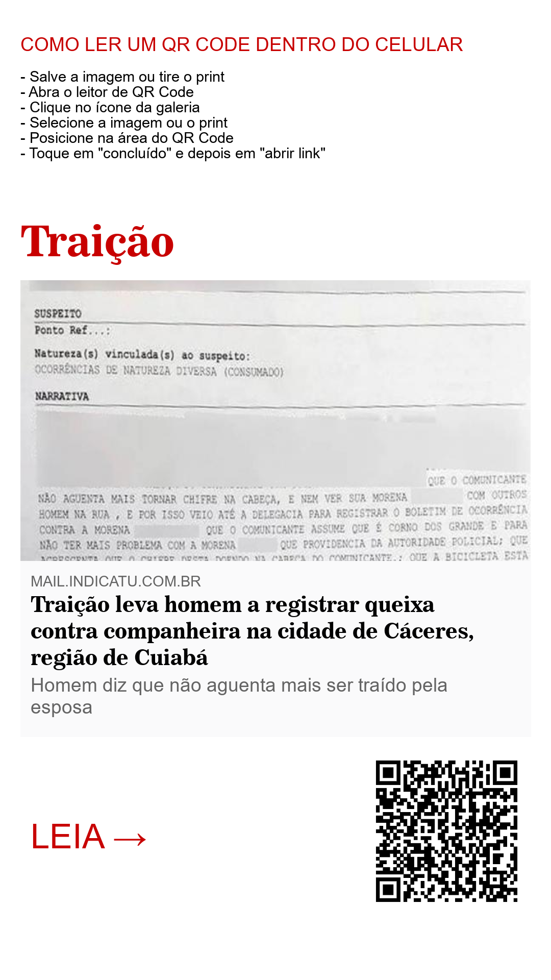 Um morador da cidade de Cáceres em Cuiabá, foi até à delegacia de polícia nesta segunda-feira (17), registrar uma queixa contra sua companheira porque estava sendo traido por ela. Segundo contado por ele no boletim de ocorrências, o mesmo se diz 'cançado de levar chifres' da esposa, e que já presenciou 'várias vezes' sua mulher na cama com outro.