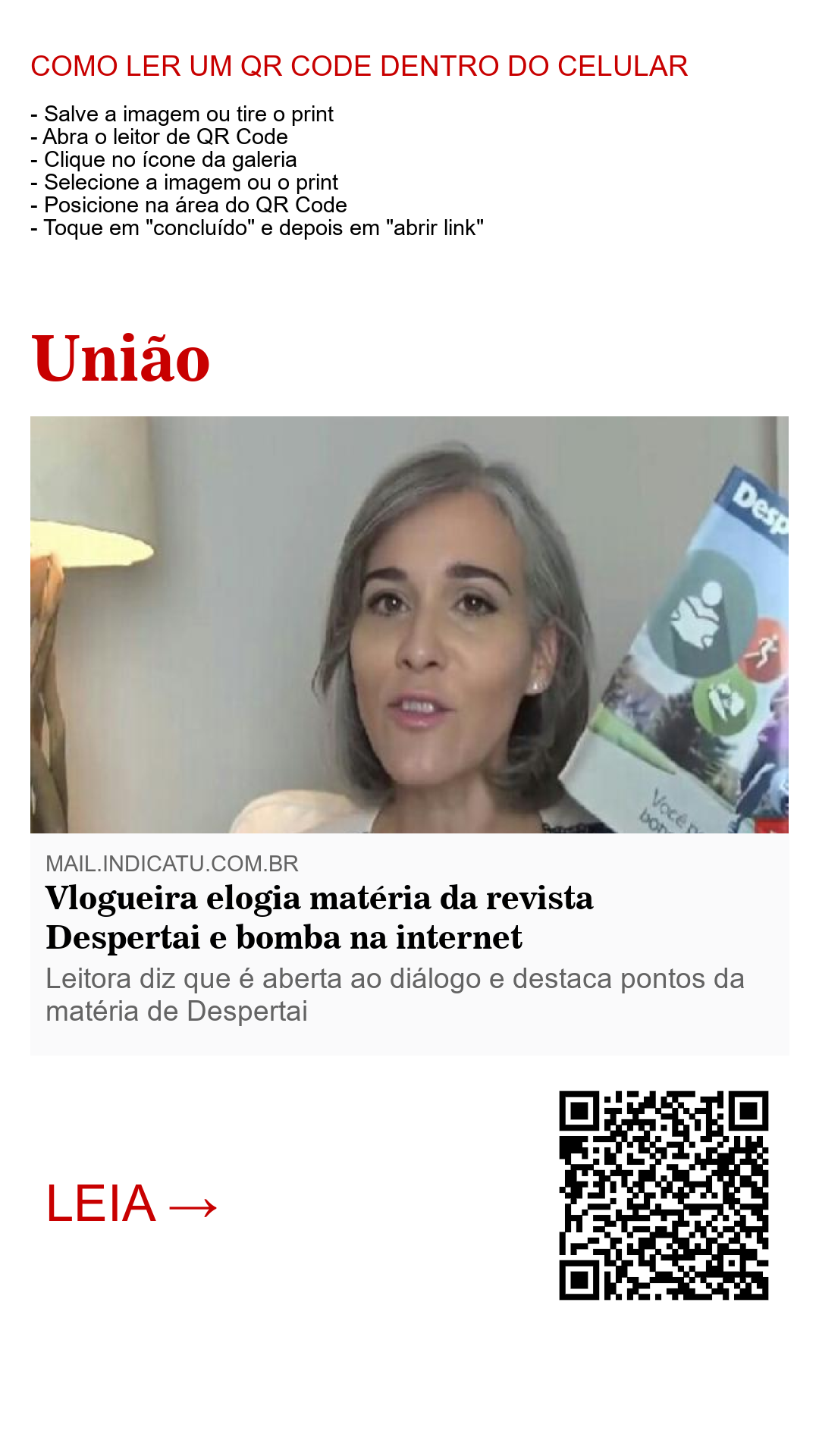 Disponível de forma gratuita ao público, uma matéria da revista Despertai, produzida pelas Testemunhas de Jeová, ganhou grande destaque nas redes sociais, não só pelo seu conteúdo, mas, principalmente, pela descrição feita dos artigos na voz de uma leitora que gravou um vídeo e publicou na sua conta do TouTube.